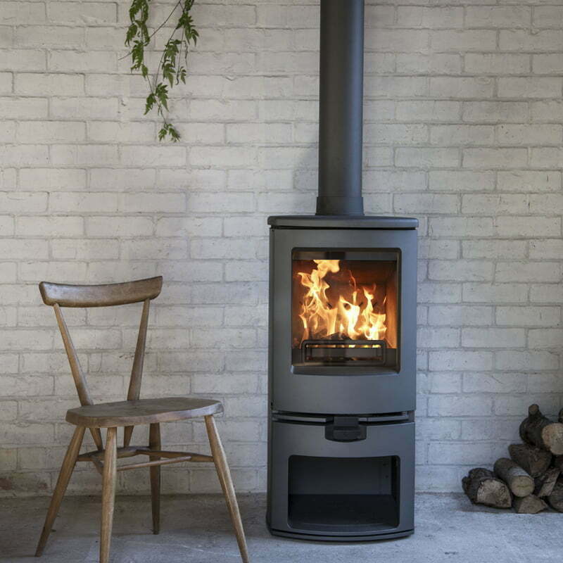 Med sin avskalade enkelhet och elegans passar Arc 5 lika bra i moderna urbana miljöer som i mer traditionella hem. Under de rena, moderna linjerna ligger ett innovativt förbränningssystem som säkerställer en enastående verkningsgrad på över 80 %. Förbränningssystemet i Arc 5 utnyttjar veden maximalt och genererar extremt låga föroreningsnivåer. Du styr förbränningen själv med endast ett reglage, vilket ger dig en överlägsen kontroll. Ett extra plus är möjligheten att komplettera kaminen med en funktionell kokplatta.